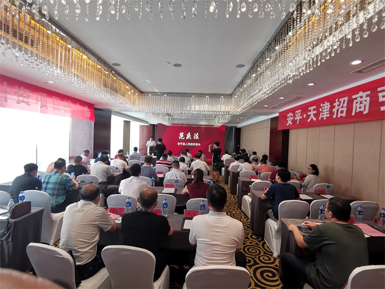 安平县县长范庆法主持会议。首先播放了安平宣传片,随后中共安平县县委书记张福杰致词,常务副县长张云龙介绍了安平县的产业特色、投资环境、招商政策和招商引资项目。